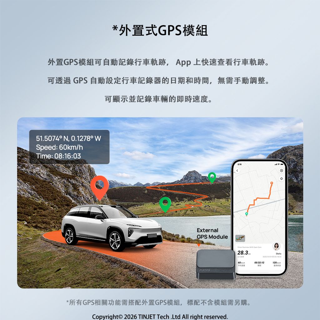 GPS只用作車速位置記錄,無測速提醒(電子狗)
